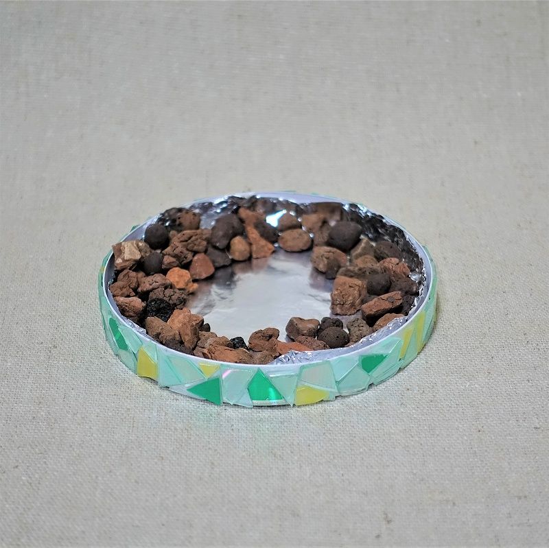 保護する意味で、全体にトップコートを塗って、完成です。あとは、アルミホイルを敷いて、鉢をセット。