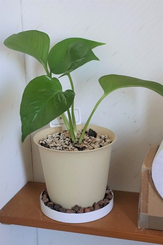 ▼株分けしたポトスとデコレーションした鉢皿
